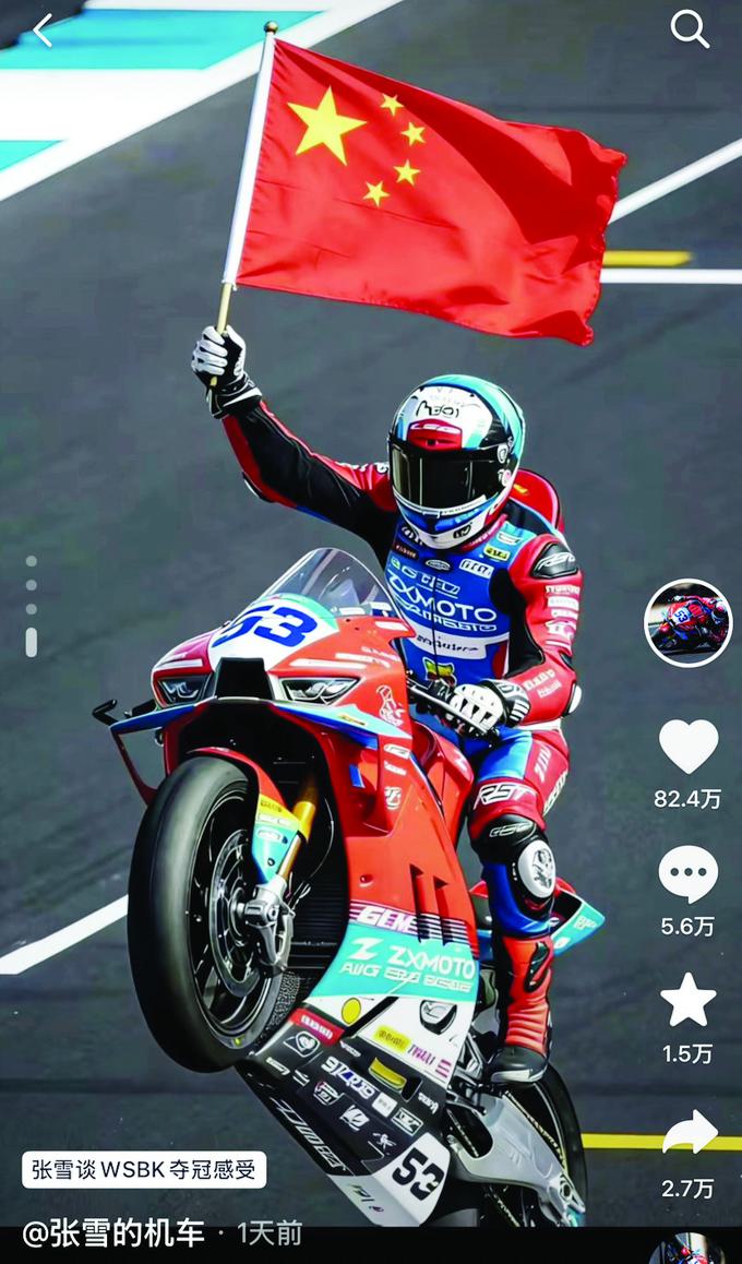 夺冠后,骑手骑着张雪机车庆祝 图源@张雪的机车